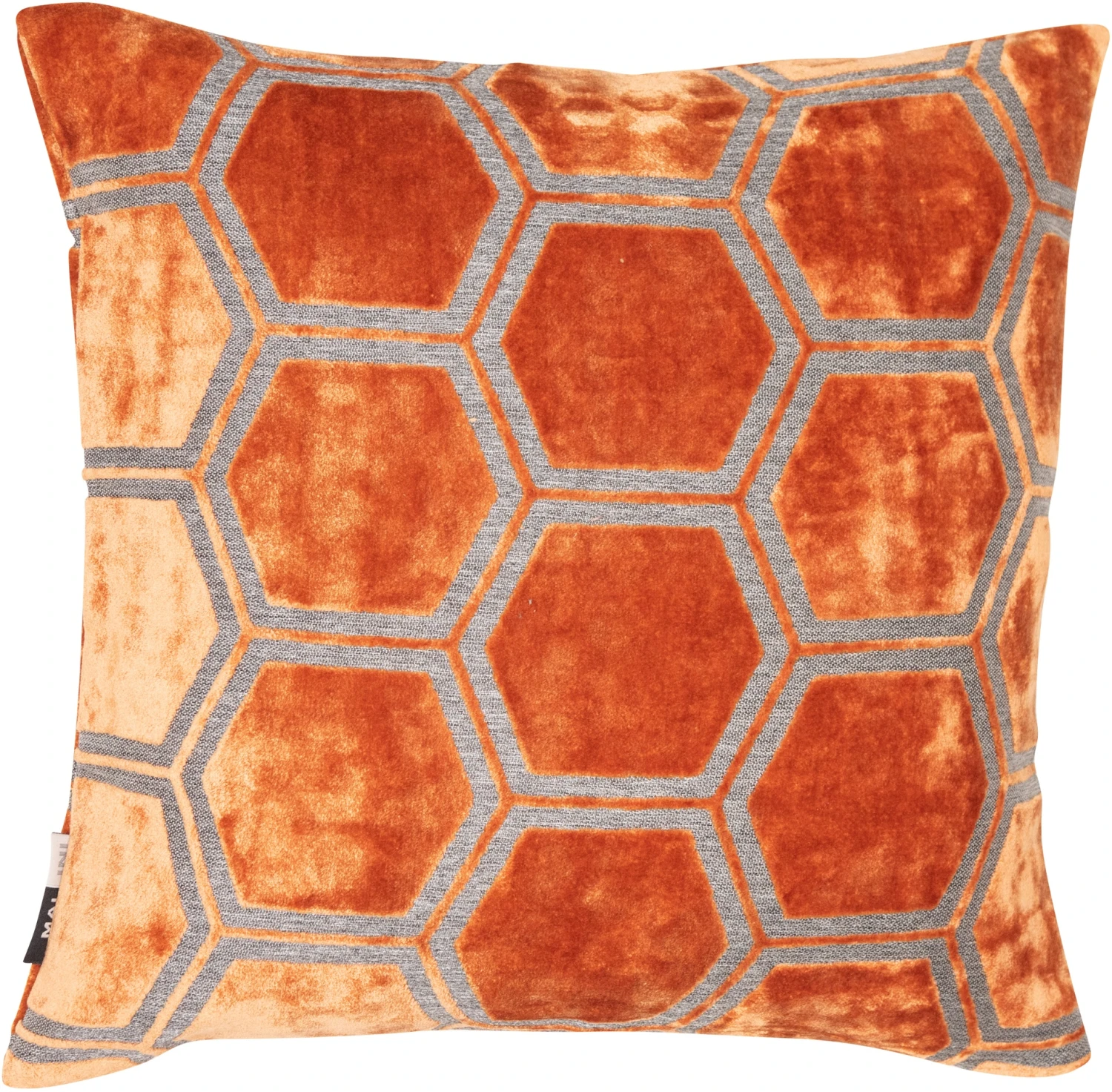 Textured cut velvet cushion with a geometric hexagonal pattern